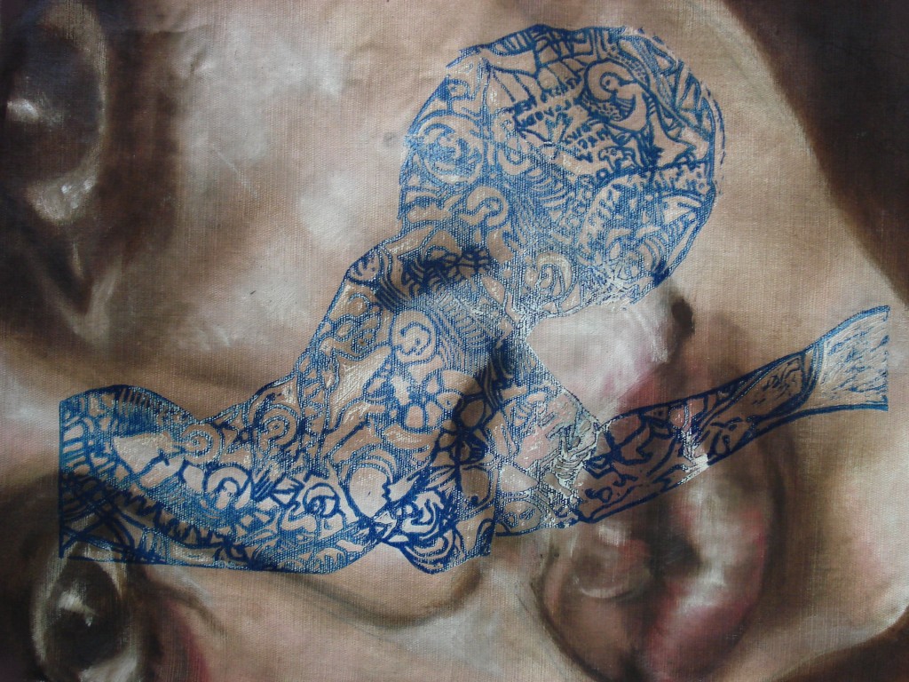 olej a linoryt na plátne